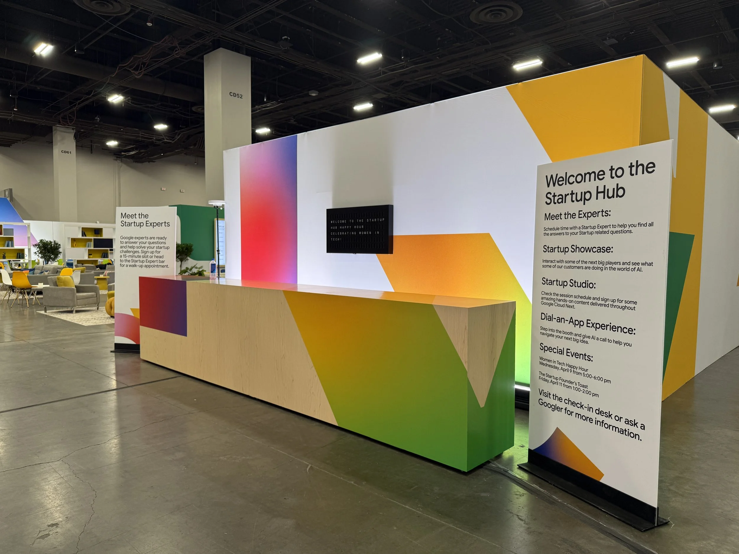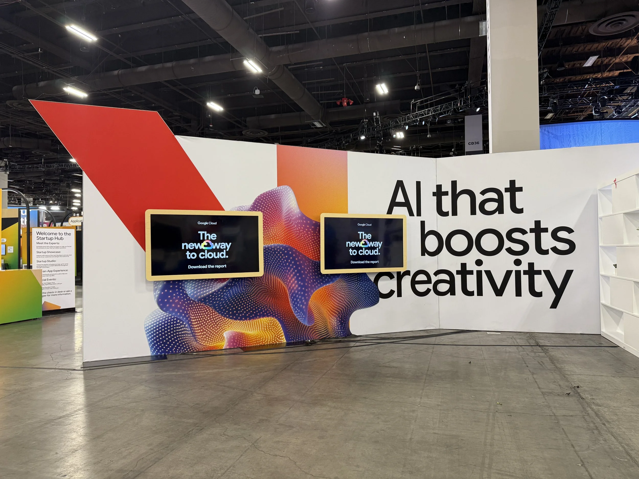 As a Creative Director, I lead the creative development of all visual and graphics of each of my dedicated spaces, totaling over 300,000 sq. ft of the Expo floor and networking spaces. I lead a team of art directors, graphic designers, and 3D designers to build floor plans, create large scale graphics, develop 3D models and renders, and worked closely with multiple Google Cloud teams to bring each of my spaces to life.